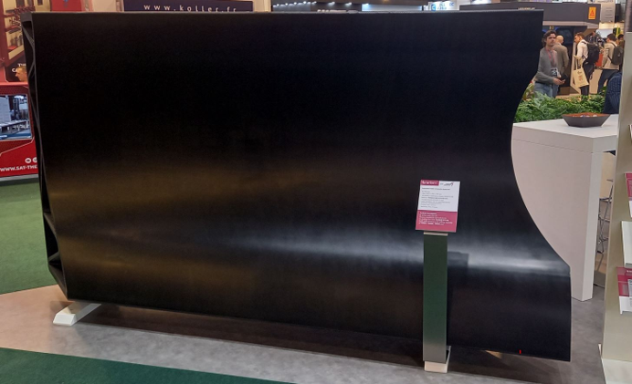 Unique feature is the fact this part had been press-molded in a single stage, featuring integrated fixture built using re-cycled carbon fiber. The KSP stands in the high capacity stated in 40 units / day / mold.